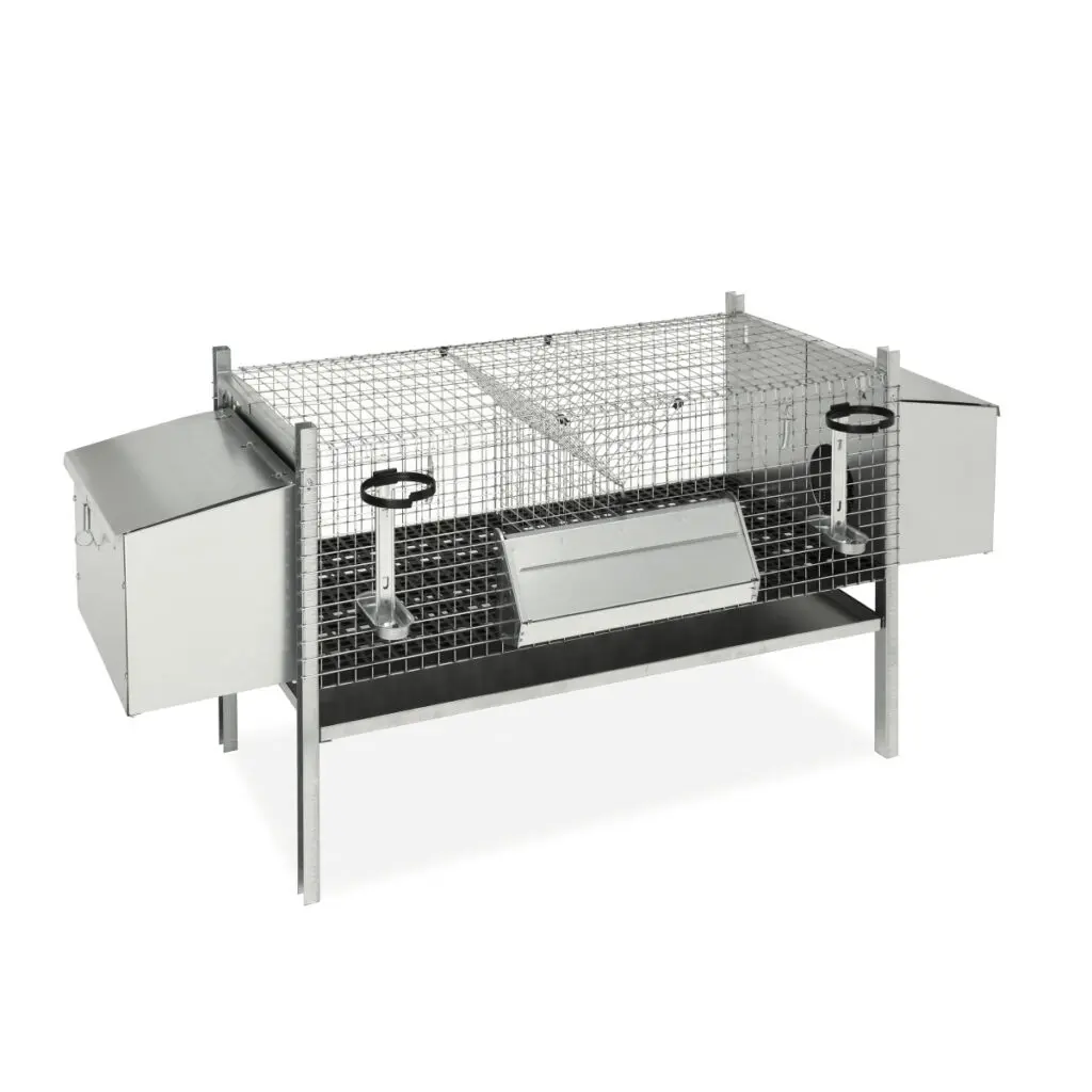Gabbia conigli a 2 cove sovrapponibile smontata imballo in cartone completa di mangiatoia, abbeveratoio e nidi