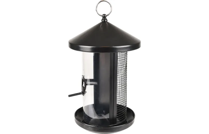 MANGIATOIA SILO UCCELLI SEMI E NOCI EIRA METALLO NERO 19x20x31CM