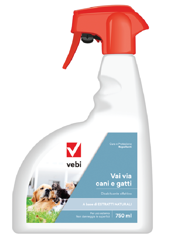 VAI VIA CANI E GATTI è un disabituante pronto all’uso a lunga durata. Abitualmente i cani ed i gatti tendono a sporcare con i propri escrementi i luoghi per marcare il loro territorio; VAI VIA CANI E GATTI, grazie alle particolari essenze naturali, rende olfattivamente sgradito il luogo trattato. Il prodotto ha efficacia prolungata nel tempo.