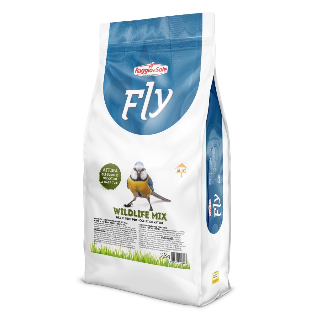 Wildlife Mix – Four seasons della linea Fly Wild di Raggio di Sole è un misto di semi energetico a bassa germinabilità per uccelli selvatici in libertà.